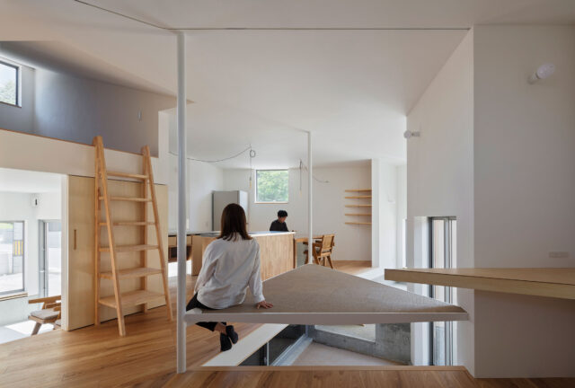 1階の庭と2階テラスにより自然と立体的に融合するリビング及び諸室は、自然と建築が刺激し合い、無限に広がる。自然と共に生きる歓びを感じられ、様々な空間体験が出来る、小さな宇宙のような建築である。