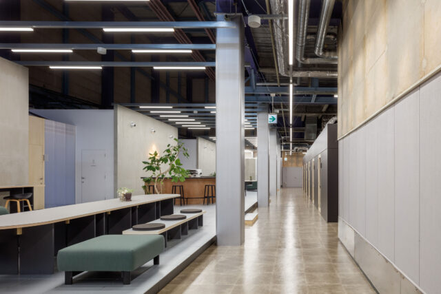 普段はAITスタッフのオフィスやミーティングの場として使われ、夜はスクールが開かれたり、受講生の交流の場としてラウンジ的に使われる。
