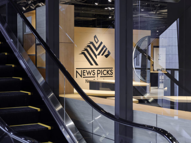 南木隆助のデザインとディレクションによる、東京・中央区銀座の、経済ニュースアプリを運営するNewsPicks社が開設したスペース「NewsPicks GINZA」