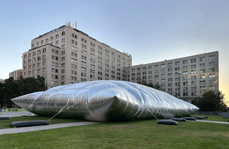 柔らかく、輪郭を帯び、わずかに不安定なその構造は、空気圧に依存し、脆弱さを空間的体験へと変換します。その半透明の皮膜は光を拡散し、音を増幅し、その規模にもかかわらず親密に感じられる内部空間を生み出します。