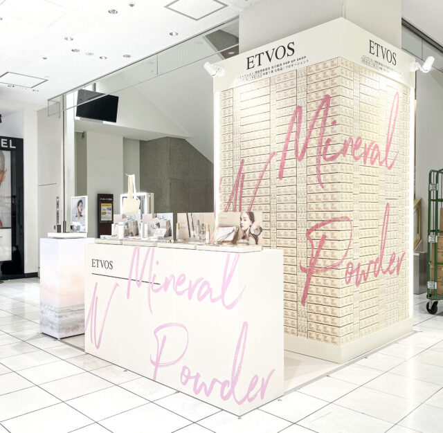 宮川清志 / SESNによる、東京の、伊勢丹新宿での化粧品のポップアップショップ「ETVOS POP UP SHOP」