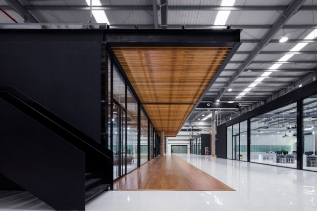 追加する機能的な部分は黒い鉄板で製作し、白い部分とのコントラストでその造形を際立たせている。白い部分は余白として贅沢に空間に還元している。