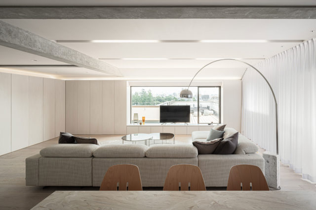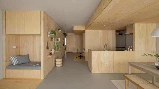 SHARE 芦沢啓治建築設計事務所+ノームアーキテクツによる、東京の、集合住宅の一住戸の改修「Azabu Residence」。カリモクケーススタディとして、内装と家具類をフラットに捉えデザインし完成後に販売