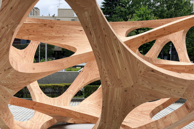 木材を三次元カットして組み合わせる、日本の最新技術を生かした建築が、力強い物質感と工芸品のような緊張感を持って立ち上がり、都市の中に様々な文脈を引き寄せる、孔のような場所が生まれるでしょう。また、この設置場所は、パビリオンのもつ「多様なものが共存する」というテーマとも共通します。