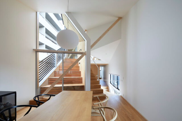 間口が狭く奥行のある敷地における新たな可能性を示す