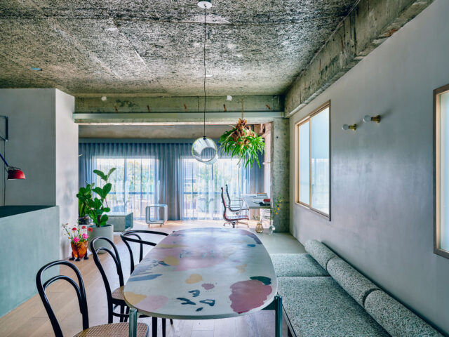 SHARE トラフ建築設計事務所による、東京・清澄白河の、既存倉庫を改修した自転車ブランド“tokyobike”の旗艦店「TOKYOBIKE TOKYO」。複数店舗が入居し、自転車ファンだけでない様々な目的を持った人々を受けいれる“解放された大階段”をもった空間を設計