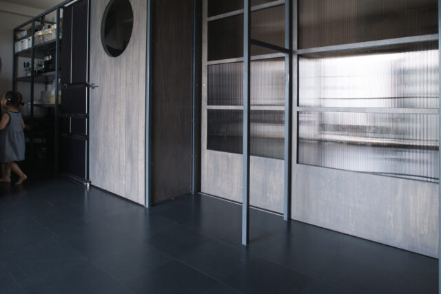 なぜここまで、鉄の強度に拘ったのか。それは、施主がこのマンション一室を借りてやっていこうという、決意の強度に触れたからかと思う。解体できないからとどこにいっても置けるような家具を選ぶのではなく、解体できないことを含んだこの場の全ての情報を組み込んだ、強いインテリアをつくることを選んだ。