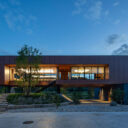 • 胡実建築設計事務所による、東京・町田市の住宅「丹沢山を眺める家」。木の塊から作品を作り出す施主への敬意を込め、外装に節材を使い様々なスケールで豊かな素材感を与える、木から削り出したようなヴォリュームの建築