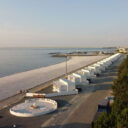 The parallel east and west walls are rendered a pale, complementary color. When gazing into the styling mirror the change in color creates a memorable sensation akin to that of looking at the surface of water.