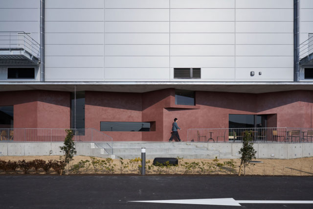 キッチンでは天然由来のものを除き、保存料や添加物は使われず、徹底した衛生管理がなされる。この高度な調理環境の運用を可能にしているのが、緊張感を持って品質管理に努める従業員達である。その従業員達がシステマティックな厨房空間から開放される「ひとやすみ」の空間として、角のない包まれるような休憩室をデザインした。壁面仕上は有機的な職人の手跡が残るような左官とし、身体が触れる部位を天然木とすることで優しさのある表情と手触りを与えた。