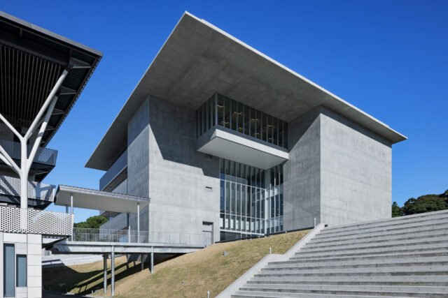構造・構成は1間グリット(規則性)を基本とし、21本の通し柱のうち外周の柱はグリットからズラし、中央の柱を45度振り、同じ階高(2,005mm)の3層を積み上げた。
