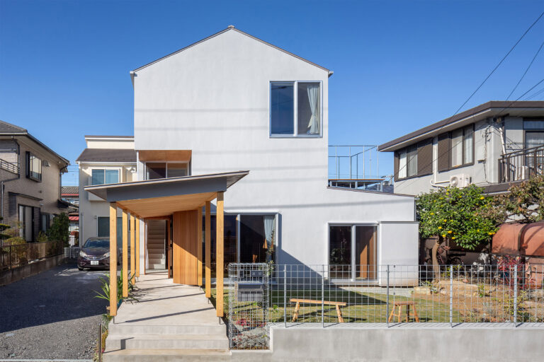 野村直毅が設計した、京都市の住宅「伏見・古家を取り込む増築」です。幅4m奥行44mの敷地に建つ古家の改修増築計画で、古家を資源と捉え“職”と“住”の豊かな共存を目指して既存を包み込む様に増築、内外が反転するレイヤーが家族同士や街との距離感を調整する住宅です。