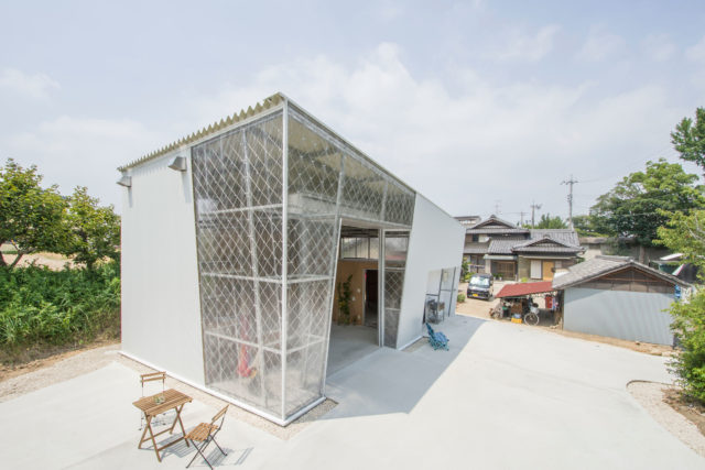 葛島隆之建築設計事務所による、愛知・刈谷市の、資材置き場や仕事仲間や近隣住民の為のコミュニティスペースなどの機能を持つ離れ「Hut」