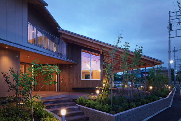 長谷川駿+猪又直己 / JAMZAと小林千尋+KEIYO DESIGNによる、千葉・船橋市の、医療複合施設「船橋のこどもクリニック」。農地と宅地が混在する場に計画、現在の大らかな風景に馴染みつつ将来の宅地化にも前向きに作用する、未来の街並みを導く建築を目指す photo©楠瀬友将