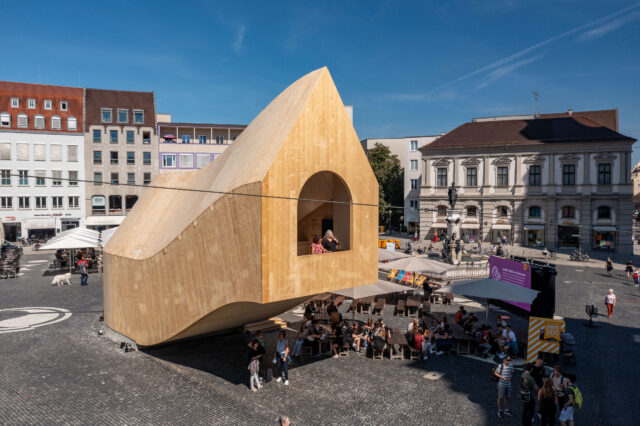 最後にアウクスブルクでは、この研究の方式がより高密度な都市開発として現れています。この提案では、教育という異なるニーズと、知識経済を活用する都市の可能性に焦点を当てることで、オリジナルのアウクスブルク・フッゲライとは一線を画しています。この提案は、平均年齢が若く、他の研究よりも入居期間が短いコミュニティとして構想されています。このフッゲライは、モジュール建築技術を用い、既存の建物を改修するもので、フッゲライの「通り」は、複数のレベルにエントリーがあるスタッカブルな要素として解釈されています。