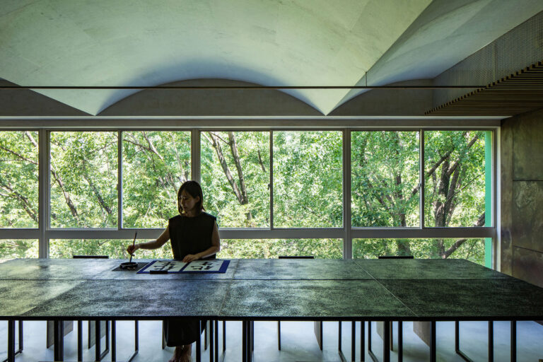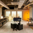 We try to gather “architectural things” that are scattered to glue the separated spaces together―curtains, long sofas, systemized wooden pillars, beams, handrails, space colored in gray, ceiling line that draws curve―although each of their existence is insignificant by themselves, however, they connect the spaces appropriately by organizing with each other and making sort of combination.