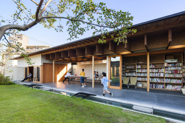 SHARE 池下成次建築設計室による、福岡市の「高宮の家」。施主家族の慣れ親しんだ場に計画。エリアの変化への応答と地域との繋がりを目指して、透かし積煉瓦塀の“閉じない中庭”を考案。環境・生活・時間軸を考慮して均整のとれた建築をつくる