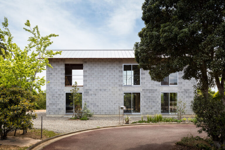 周辺に出現する超高層オフィスビルに対応するため、外周ブロックの外壁面にはフォーマルな格子状のファサードが採用されています。そのほか、バルコニーやテラス、屋上、小さなパヴィリオンなど、流れるような曲線を描く外皮は、リサイクル竹を使ったファサードで覆われています。