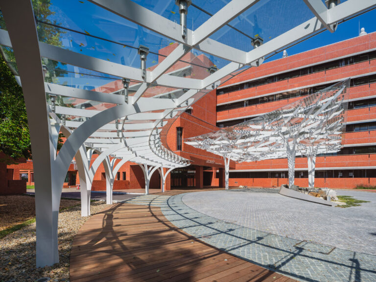約2,000人が時間や場所を自由に選び働く場です。建築家は、“特定多数のコモン”の均衡を目指し、多様な行動を促進する“道”を作りタスクに応じ占有できる“拠点”を配置しました。そして、個人の自由と集団の生産性を両立する事が意図されました。