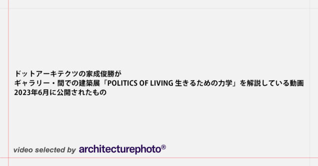 2023.6.11Sunドットアーキテクツの家成俊勝が、ギャラリー・間での建築展「POLITICS OF LIVING 生きるための力学」を解説している動画。2023年6月に公開されたもの