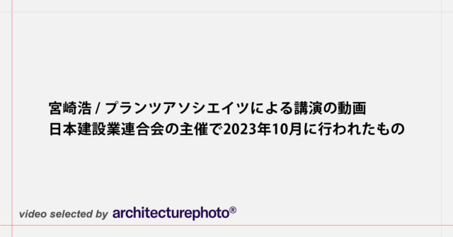 平田晃久、宮崎浩、齋賀英二郎・斎藤英俊・木村勉が、2022年日本建築学会賞の受賞作品について講演している動画です。また、坂牛卓と乾久美子が参加した討議も収録されています。2022年7月6日に開催されたものです。