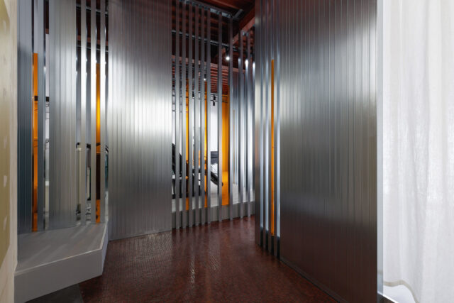 In the external form that fits the residential area, the house is created on a scale that takes a step back from the isogranular scale of the residential area, and on a scale that takes its cue from private experience, and everywhere deviates from the homogeneous and conventional scale. By selectively deviating from the structure of the residential area in this way, the houses will not be confined to the house, but will be floating in the city, bringing freedom to people’s lives.]