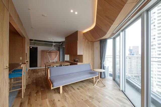 | 内装・造作家具 | カウンター | ラワン合板 UC塗装+再利用フローリング+再利用大谷石 |