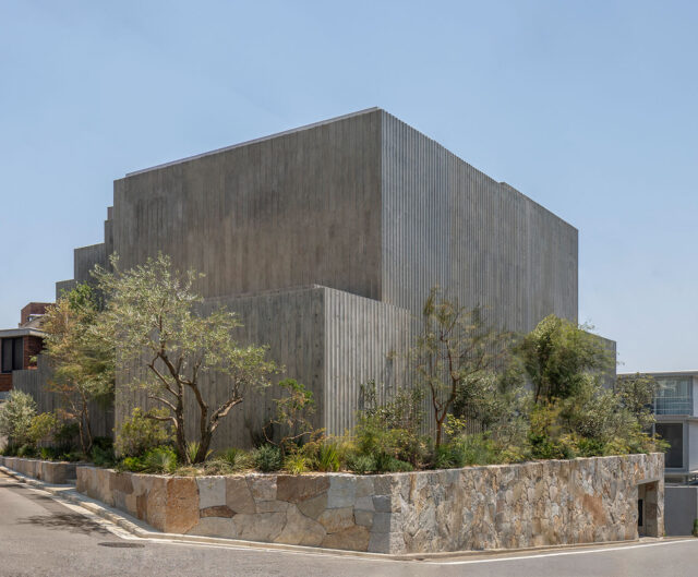 地域の工務店の為に計画されました。建築家は、若い世代への“郊外での豊かな暮らし”の提案を意図し、街に光風を通す低いヴォリュームの中に豊かな内部空間が広がる建築を考案しました。そして、風土と地方の需要に呼応する“プロトタイプ”を作る事も意図されました。