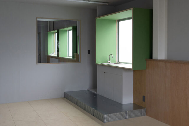 3階 / 4階はシェアオフィスとする計画で、パチンコ店の社員寮 / 住居として作られた既存平面をほとんどそのまま利用している。