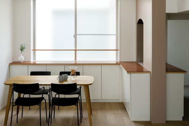 • 伯耆原洋太 / HAMS and, Studioによる、東京の住戸改修「切断の諸相04『One Nuance』」。共働きの夫婦の為の住居。多様な活動の受容と将来の変化への追従を求め、構成・色・素材の操作で空間全体に“微妙な差異”をつくる設計を志向。各部屋毎に異なる建具を用いて主空間のリビングの多様な表情も作る