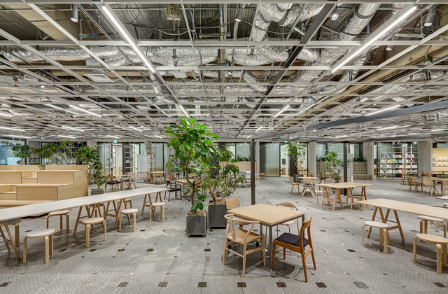 会社の顔となるレセプションを始めとしたこのエリアでは、社内外の為のイベントが開催できること、そして、社員だけでなく、取引先やコラボレーターが働いたりミーティングすることができるエリアとして計画された。