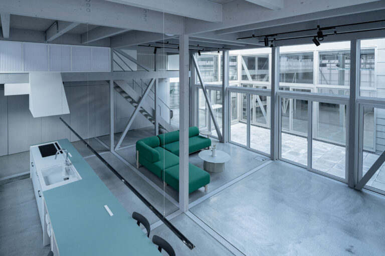建蔽率を超えて空間をつくり、一部の屋根をくり抜き面積を調整したが、約250㎡のおおらかな「そこらへん一帯」のワンルーム空間が生まれた。この空間では視点や働きかけによって室名らしきものが出現するが、時間の経過や慣習の変化によって都度、視点や働きかけも変化し室名らしきものも移ろい変わる。