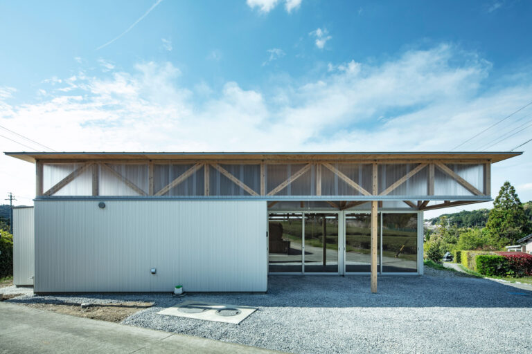 昔からの関係性が強い集落に別の土地から移り住む家族にとってトラスで構成された大きな屋根は、時には住まい手の生活がにじみ出るものとして、時にはご近所を迎え入れるものとして機能している。