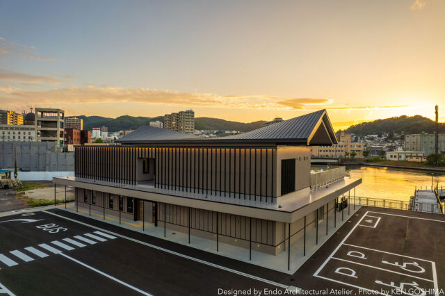 敷地形状と斜線制限が作り出す片流れ屋根をこの地のある種のバナキュラーなものとして受け止め手掛かりとしつつ、同時に周辺の住宅とは全く異なる空間体験を実現することを試みた。