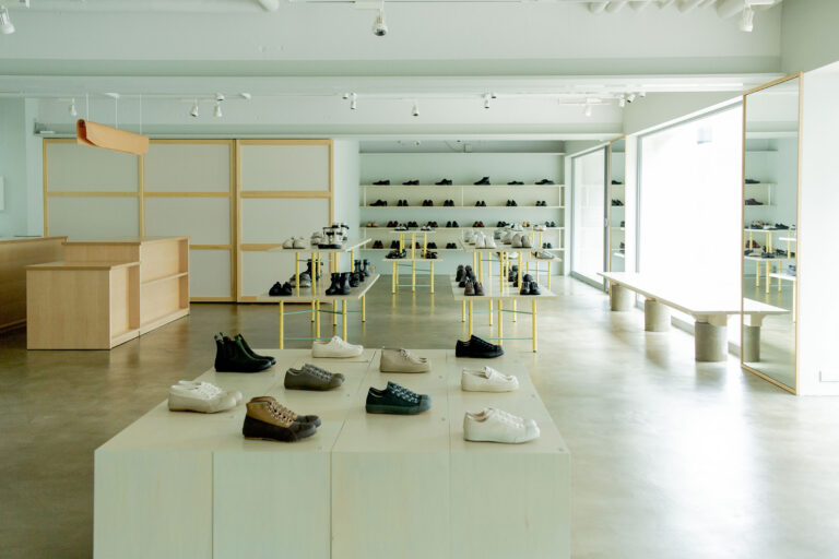 一足の靴を作るためにも、実は多様な職能や素材、知恵や様々な手仕事の積み重ねが必要である。私たちが日頃思考停止しつつある、ものの背景、作り方への想像力を少しだけ取り戻すことのできるような店舗デザインを目指した。