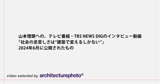 SHARE 山本理顕の、プリツカー賞授賞式の様子などを収録した動画。2024年5月にシカゴで行われたもの。歴代の同賞受賞者のコメントも収録