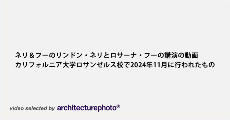 SHARE ネリ&フーのリンドン・ネリとロサーナ・フーの講演の動画。カリフォルニア大学ロサンゼルス校で2024年11月に行われたもの architecture|video ネリ&フー講演録 ネリ&フーのリンドン・ネリとロサーナ・フーの講演の動画です。カリフォルニア大学ロサンゼルス校で2024年11月に行われたもの。
