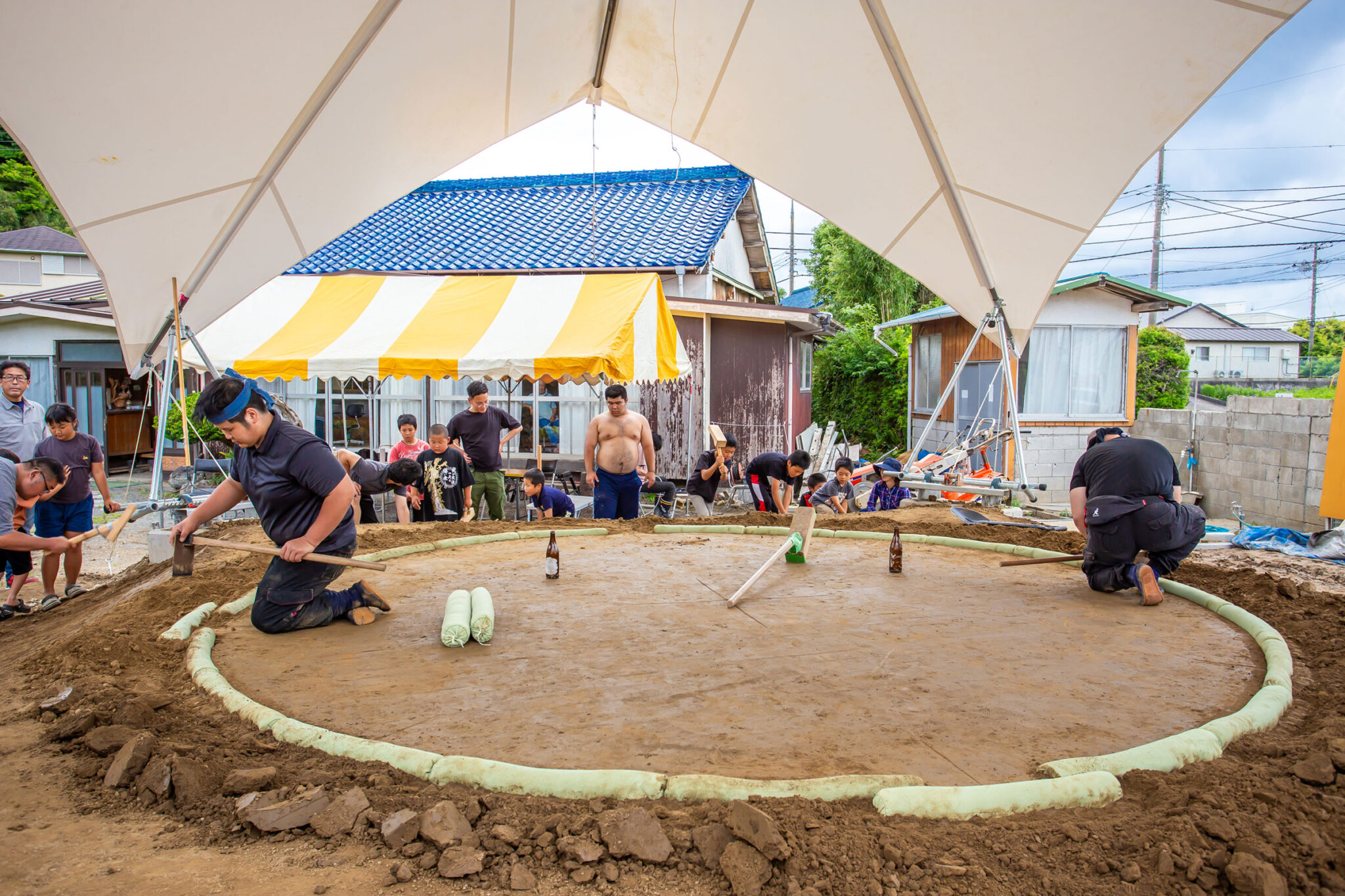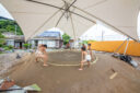 千葉県館山市の熱心な小学生の相撲サークルと縁があり、手作りの屋外の土俵の上にかける屋根について相談を受けた。