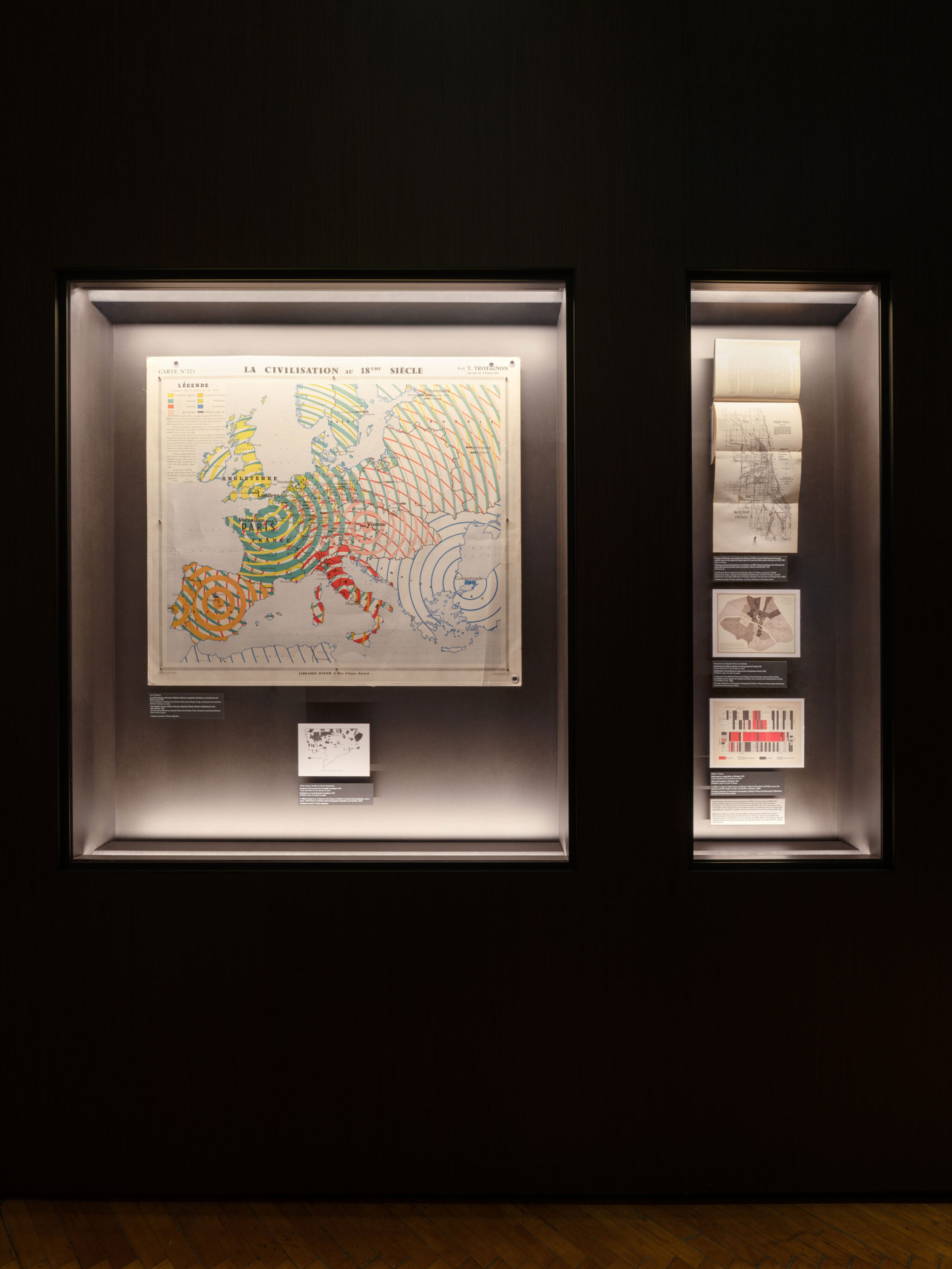 Another significant thematic strand focuses on war. The diagram of Napoleon’s campaign in Russia, created by the French civil engineer Charles Joseph Minard (1781-1871), is widely considered to be a milestone in the graphical representation of data. The exhibition develops a dialogue that connects Minard’s visual innovations with those of the Scottish political economist William Playfair (1759-1823), propaganda graphics from 20th-century regimes, and the investigative work of contemporary studios.