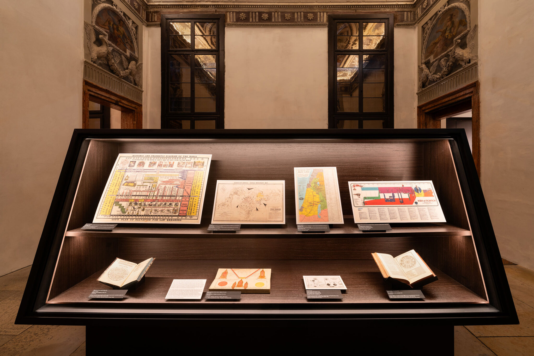 The exhibition, on view on the ground and first floors of the 18th-century Palazzo Ca’ Corner della Regina, gathers more than 300 items, including rare documents, printed publications, digital images, and videos, spanning from the 12th century to the present day and related to various geographical and cultural contexts. This material is displayed according to a thematic principle that reflects not only contemporary world urgencies but also, de facto, demonstrates the diagram’s transversal and diachronic nature.