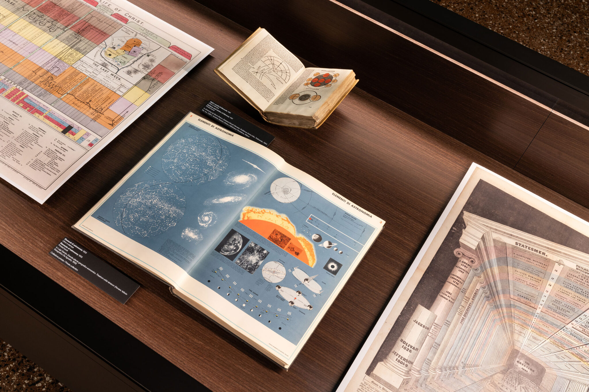 The 19th century, referred to as the Golden Age of Infographics, is a point of departure for reflecting on the use and misuse of data in communicating sociopolitical knowledge. In the early part of the century, the advent of new printing techniques coincided with the rapid expansion of education. In this historical context, pioneering American feminist educator Emma Willard (1787–1870) published history and geography textbooks featuring innovative and creative maps of time, which helped translate data and information into manageable visual forms. The exhibition also demonstrates how diagrams can simultaneously serve as ambiguous instruments for distorting narratives, enhanced by the overwhelming power of big data and a fragmented communication landscape driven by social media and online platforms.