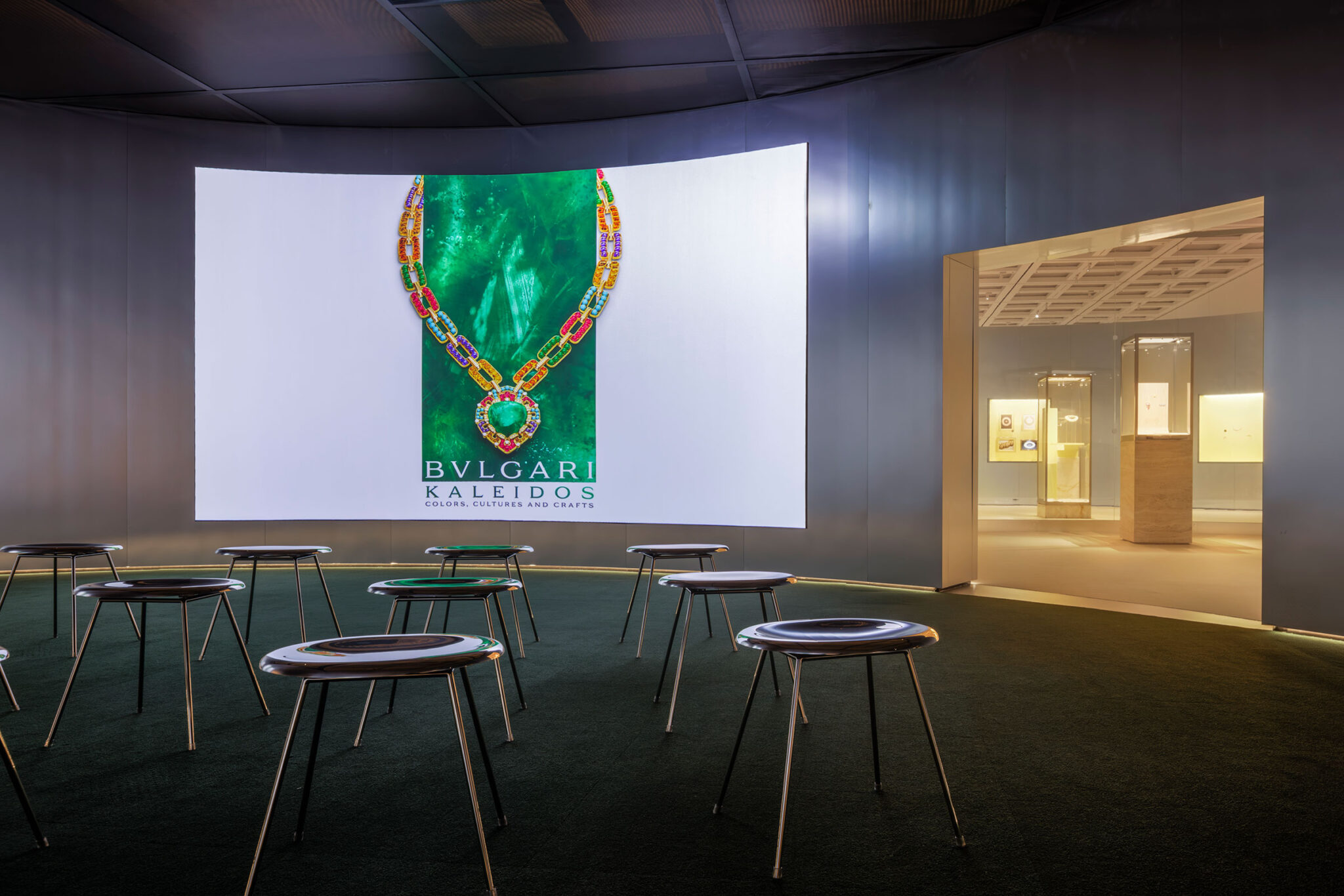 ハイジュエリー、ブルガリ・ヘリテージ・コレクションのクリエーション、現代アート、ブルガリ・ヒストリカル・アーカイブからの貴重な資料、そして没入型のインスタレーションが取り混ぜられた本展覧会は、さまざまな創造性と心を揺さぶる体験が次々と現れる万華鏡のような展覧会です。映像、インタラクティブな空間、芸術的な対話がブルガリの色彩の世界に命を吹き込む多面的な旅を通して、宝石と貴金属を自在に操るメゾンの卓越した技量を堪能していただけるでしょう。