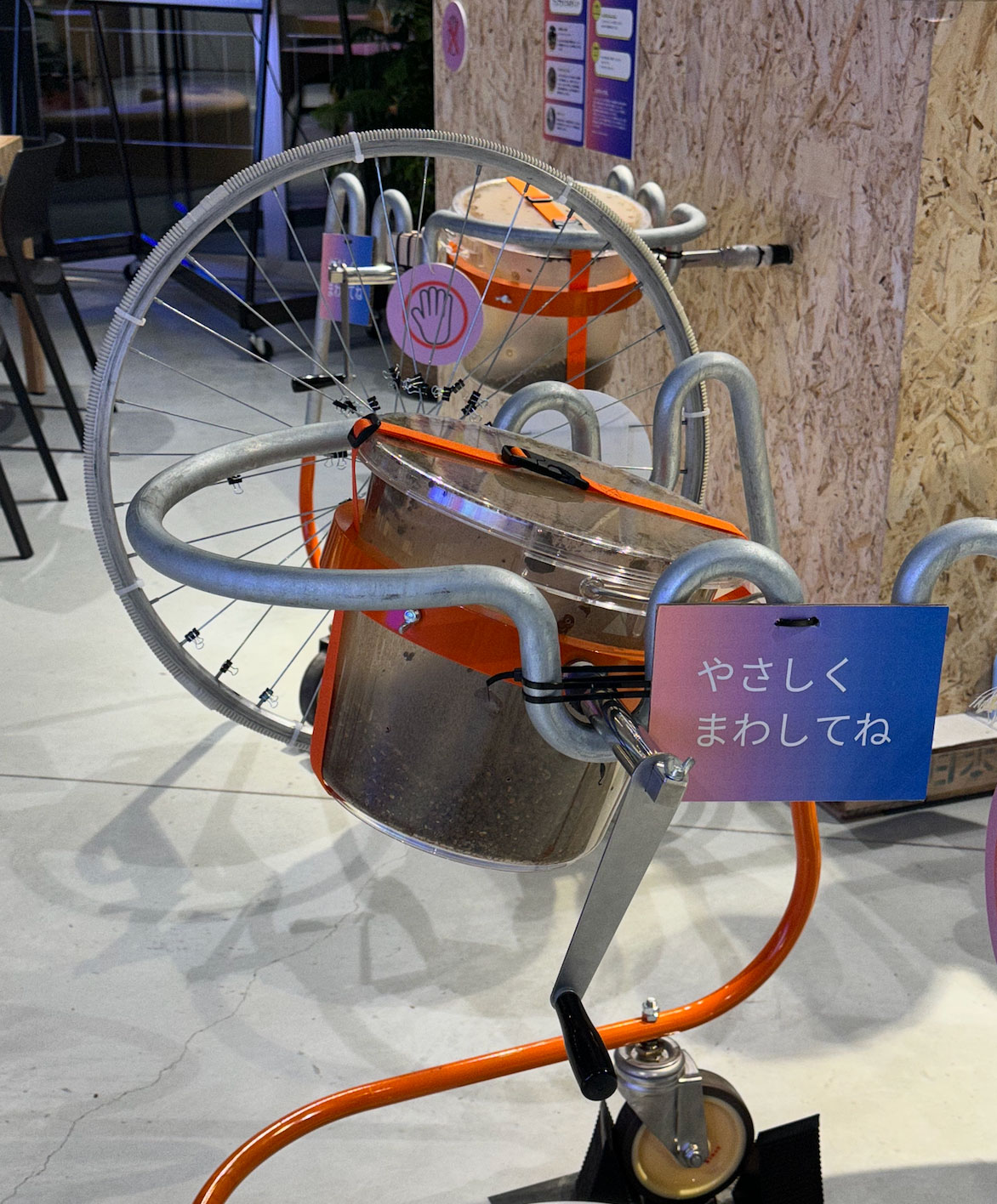 またコンポスト屋台は、コンポスター以外にも、各所でさまざまな用途で使われたり、魔改造され展示什器などに組み込まれていたりするのが楽しい。