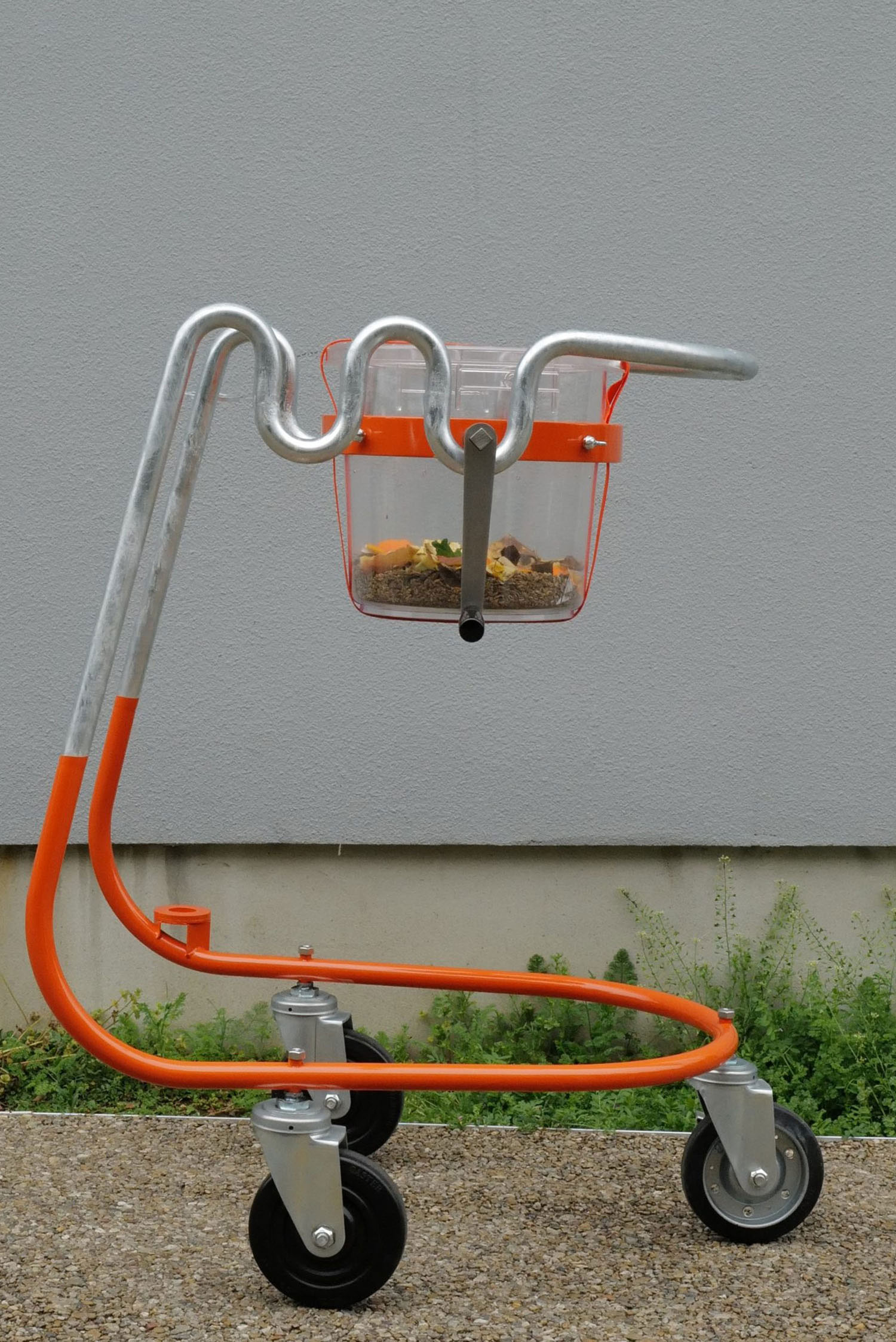 移動式の堆肥をつくる装置です。建築家は、集合住宅や商業施設での使用を想定し、“ネコ車とショッピングカートのハイブリッド”と言える形態を考案しました。また、手軽なサイズの“ノーマル”とステーションの役割も持つ“デラックス”を用意しています。