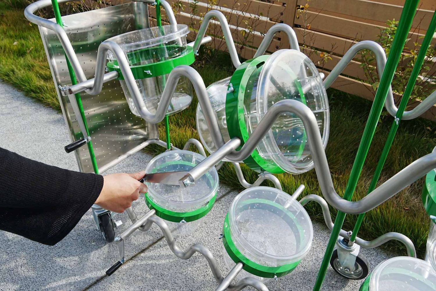ツバメアーキテクツによる「コンポスト屋台」。移動式の堆肥をつくる装置。集合住宅や商業施設での使用を想定し、“ネコ車とショッピングカートのハイブリッド”と言える形態を考案。手軽なサイズの“ノーマル”とステーションの役割も持つ“デラックス”を用意デラックス photo©ツバメアーキテクツ