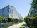 - AMP / PAM・park street studio・アオイランドスケープデザインによる、さいたま市の休憩施設「氷川神社 ゆうすいてらす」。“水・光・風の流れの回復”に向けて、ランドスケープ的介入の一部として建築を定位。“聖と俗のあわい”の場も意図し、全方位からの“流れ”を迎え入れる分棟型の構成を考案