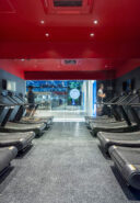 “街かど高地トレーニング”をうたうジムの計画です。建築家は、低酸素ルームで運動する施設として、パフォーマンス向上の為に“空気”のデザインを志向しました。そして、空の様な“青色”の空間から血液の様な“赤色”の主空間に移行する構成を考案しました。店舗の場所はこちら(Google Map)。