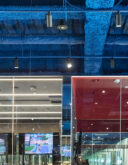 吉田昌弘 / KAMITOPENによる、千葉市の店舗「Hyex 海浜幕張店」。“街かど高地トレーニング”をうたうジム。低酸素ルームで運動する施設として、パフォーマンス向上の為に“空気”のデザインを志向。空の様な“青色”の空間から血液の様な“赤色”の主空間に移行する構成を考案サインの詳細 photo©宮本啓介
