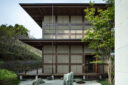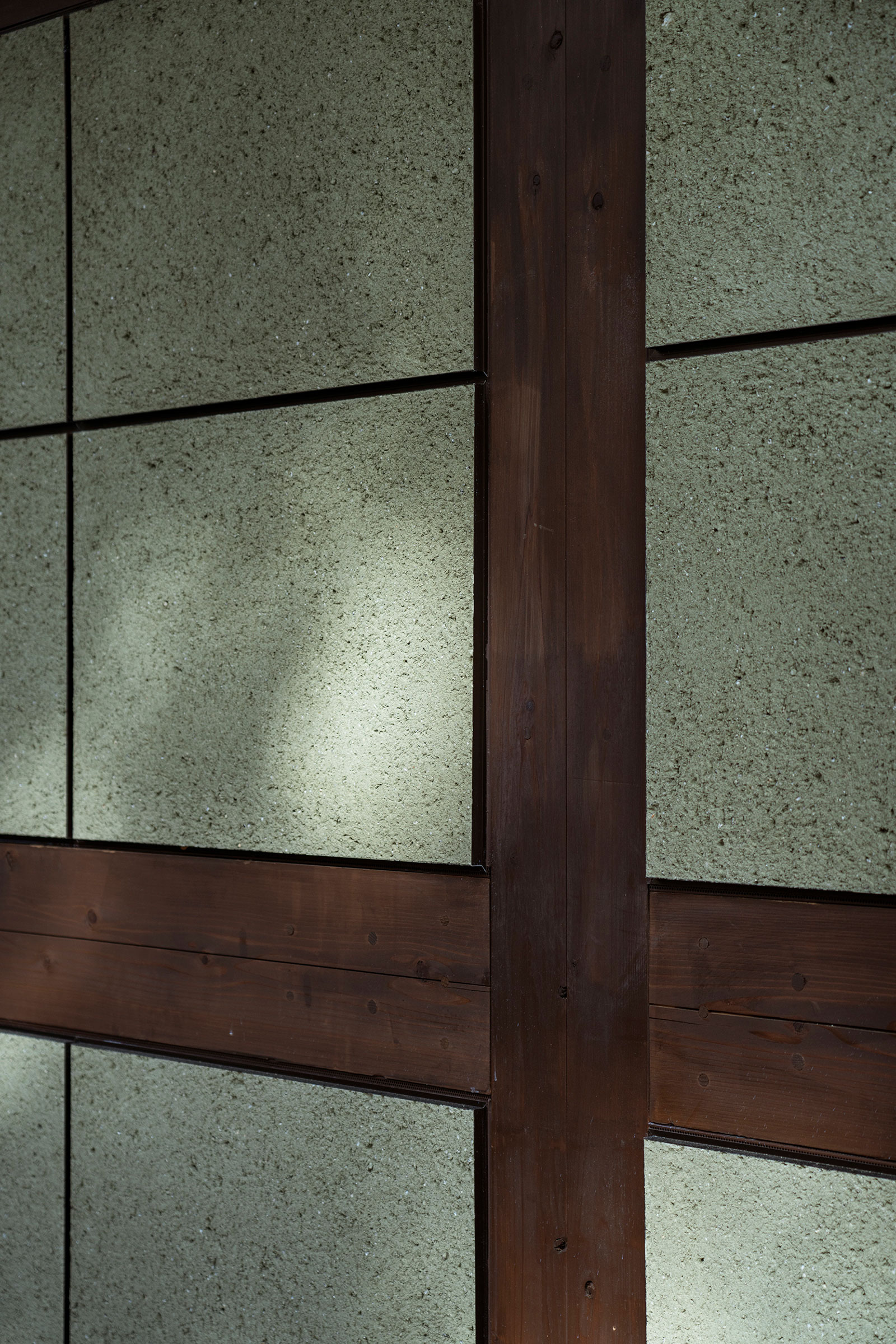 ​The earthen wall panels fit seamlessly into the wooden latticework module measuring 1.82m x 1.82m x 1.35m. These panels are crafted by mixing the site’s soil with grass. In front, a Japanese garden and a walking path extend, enhancing the natural ambiance.