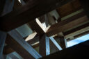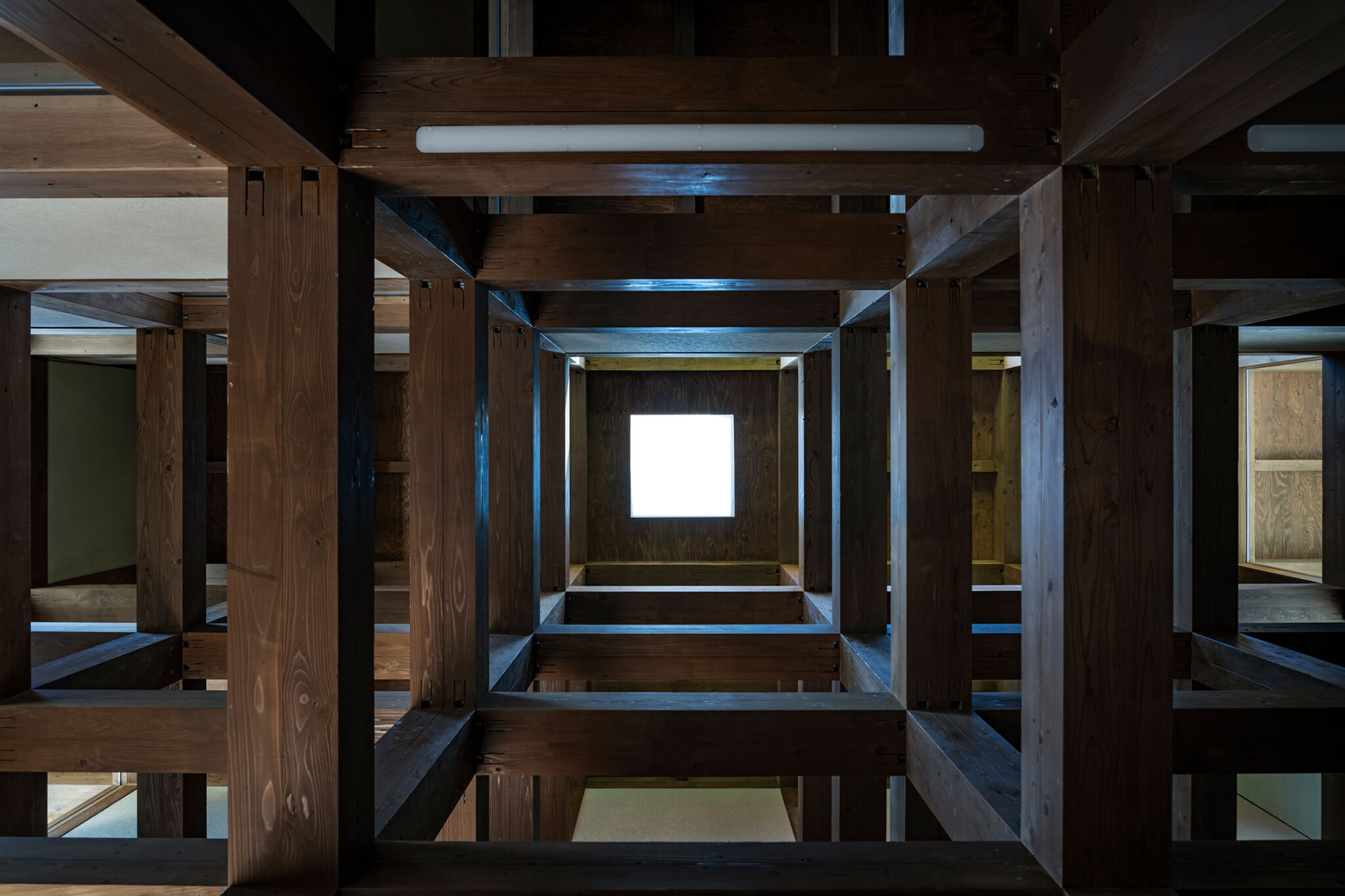 伝統的な貫構法ではなく現代の金物構法とすることで、より抽象的な立体格子をめざした。